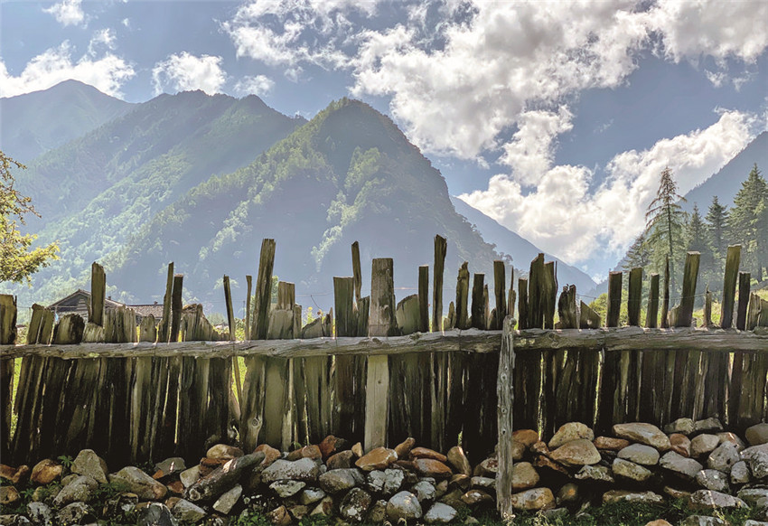 女人們相約去后山林中撿野生菌。一位穿氆氌袍子的老牧人領(lǐng)著小孫女,還有一只勇猛地藏獒,在石屋后方的草坪上等太陽。微風(fēng)輕拂著他們腳邊盛開的鳶尾花,細(xì)聽,那鈴鐺般的花朵搖響嘶嘶桑桑的音樂。小女孩在花叢中那條伸向牧場的小路上撿拾白色的小石子,裝入衣包里,鼓脹后就取出一枚枚投向花叢中的黑蝴蝶,令它的世界撲朔迷離。老牧人瞇縫著眼睛,翻轉(zhuǎn)粗糙的手心手背,仿佛要使它也開出鳶尾花朵來。我朝他們走去,小女孩朝我跑來,撲進我的懷中喊我阿尺。我撫摸她頭頂上的卷發(fā),像撫摸著一只乖覺的小鹿。