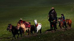 8月的扎溪卡草原水草豐美、牛羊遍地、到處是一片花的海洋,兩萬多平方公里的廣袤大地如同一座敞開的大花園。汽車行駛在草原上,就像一只小船在無邊無際的大海上航行,有時候覺得已走到了天邊,可是登高一望,還是芳草碧連天,地平線依然很遙遠,好像永遠沒有盡頭。在這離藍天很近離塵世很遠的廣闊空間里,仿佛在夢游仙境,周圍的山川景物都帶有夢幻般的色彩,對自身的存在也產(chǎn)生一種不真實的虛幻感。在這里,你似乎已變成了一個自由自在的牧人,只不過你放牧的不是牛羊,而是生命和靈魂。 扎溪卡草原的夏天到處呈現(xiàn)出一派生機勃勃的盎然景象,所有的生命之花都在這個季節(jié)盡情地綻放、茁壯地成長。在這個被稱為動物天堂的地方,你仿佛走進了一個天然野生動物園,所到之處,不時有“羽族炫翎,蹄類競走”的情形出現(xiàn)在身旁。你會驚喜地看到一對對黑頸鶴在水邊起舞,一群群白唇鹿在山間奔跑,敏捷的巖羊在峭壁上跳躍,矯健的金雕在藍天上翱翔……