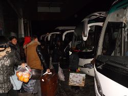 春運第一天,記者看到,康定汽車站3個售票窗口已全部開放,雖然車站售票大廳的購票旅客絡繹不絕,但記者并沒看見排長龍購票的景象。售票現(xiàn)場已用彩色標示設置出農民工、學生購票綠色通道,為返鄉(xiāng)的農民工、學生提供售票、驗票的專用通道,所以記者在客運站看到的是井井有條的購票隊伍。