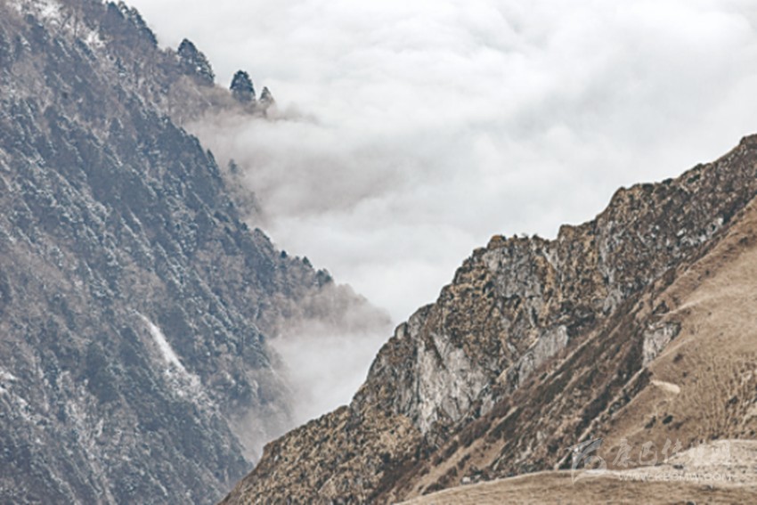 橫斷山主峰貢嘎山的西南坡,山勢陡峭,無數(shù)的錐狀山巒余峰,如刀林劍筍。雪山之下,溝谷縱橫,深邃不可測,這是現(xiàn)代交通難以到達的地方,這些深幽的峽谷中,陽光最難以照射的皺褶間,最易隱匿秘境。
