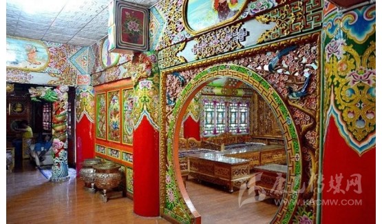 道孚民居修建最麻煩的工序是它的內(nèi)裝修。因為是技術活,親朋好友幫不上忙,而且時間長,花錢多。裝修的工匠根據(jù)主人的要求,先完成雕刻,再繪畫。一般來講,一棟中型的民居要用半年多的時間才能完成內(nèi)部裝修。雕刻與繪畫,是道孚民居的精華所在。道孚民居以其獨特的風格譽滿藏區(qū),口碑遠及海外。