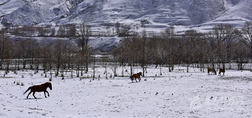 素裝銀裹的美景,不畏嚴(yán)寒的馬匹尋覓著美食,遠(yuǎn)處的山峰被云霧籠罩,多了一份彌蒙美,這還是我們印象中的新都橋嗎?