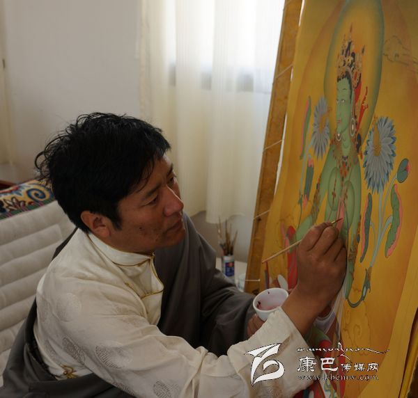 寶劍鋒從磨礪出,梅花香自苦寒來。歷經(jīng)十余年的打拼與磨礪,他結(jié)合當(dāng)今唐卡藝術(shù)的發(fā)展變化,融合各家之長,在唐卡創(chuàng)作中逐漸形成了自己的風(fēng)格,一種被稱為“多派”唐卡的新唐卡很快進(jìn)入了人們的視野。