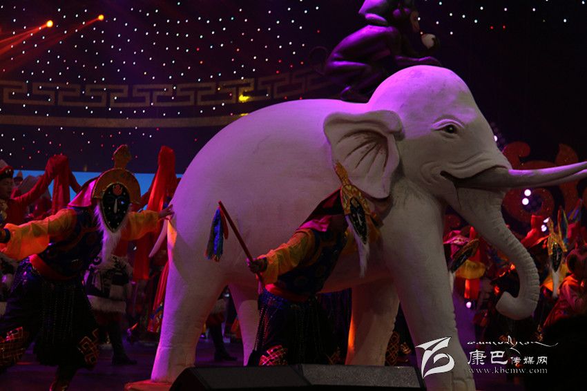 此次藏歷新年春晚被命名為“圣潔家園”,為了應(yīng)“家園”這個(gè)景,導(dǎo)演組頗有“心機(jī)”的將藏元素“和睦四瑞”搬上了舞臺(tái),在開(kāi)場(chǎng)舞中,兩個(gè)用石膏打造的、栩栩如生的“和睦四瑞”被演員緩緩?fù)粕衔枧_(tái),贏得觀眾陣陣歡呼。在民間傳說(shuō)中大象、猴子、白兔、貢布鳥(niǎo)共同發(fā)愿行持善法,貢布鳥(niǎo)鼓勵(lì)同伴們開(kāi)始持守五戒,并一直堅(jiān)持不懈動(dòng)員其它眾生嚴(yán)守五戒。在它們帶動(dòng)、勸說(shuō)下,動(dòng)物們都能漸漸做到互不損害、如理如法在木森林中和平度日,以其厲行善法之因,天人也降下和合雨水。后來(lái),整個(gè)大地之上,莊稼豐熟、植物茂密、鮮妍之花滿目盛開(kāi),整個(gè)國(guó)家喜獲豐收、財(cái)富圓滿。晚會(huì)也是想利用“和睦四瑞”寓意人民生活團(tuán)結(jié)和睦、和平寧?kù)o的美好愿望。