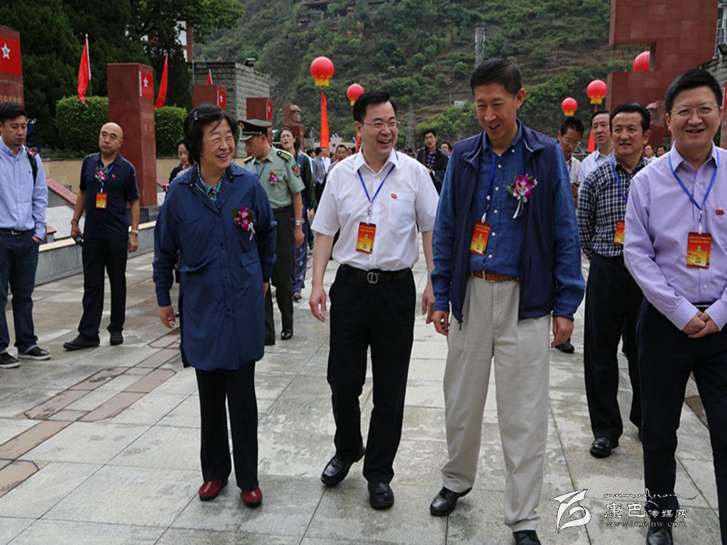 賀龍將軍之女賀曉明、楊成武將軍之子楊東明與州委書記胡昌升步入紀(jì)念大會現(xiàn)場。