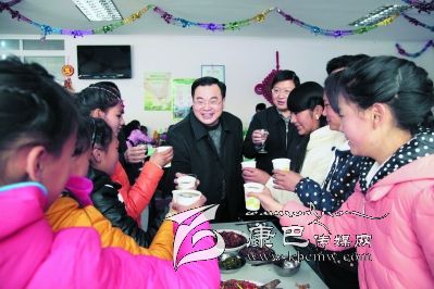 胡昌升說(shuō),希望所有的孩子們好好學(xué)習(xí),一定要聽老師的話,讓學(xué)習(xí)更好,讓身體更好;一定要聽愛心爸爸、愛心***話,讓自己的思想更好,德智體美勞全面發(fā)展,讓我們共同舉杯,祝各位同學(xué)新年有新進(jìn)步,祝大家新年快樂,扎西德勒!