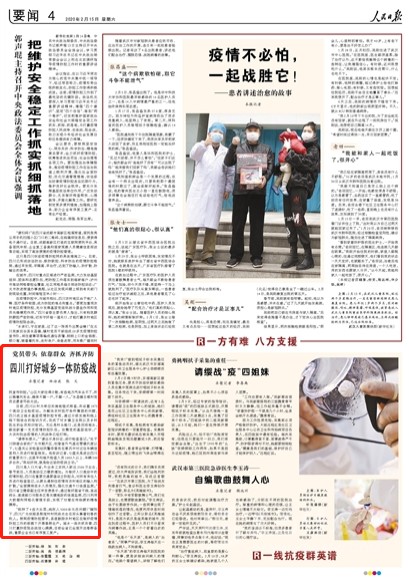 今天,人民日報(bào)刊發(fā)題為《黨員帶頭 依靠群眾 齊抓齊防——四川打好城鄉(xiāng)一體防疫戰(zhàn)》的文章,聚焦四川依法防治、聯(lián)防聯(lián)控、科學(xué)防治疫情,進(jìn)一步織密疫情防控網(wǎng)。