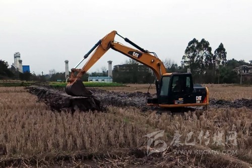 全國產(chǎn)糧大縣井研縣三江鎮(zhèn)石廟村高標準農(nóng)田建設的施工現(xiàn)場。