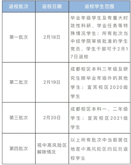 符合返校條件的學(xué)生返校批次如下,原則上不得提前返校: