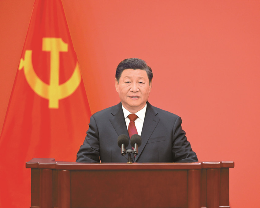 10月23日,剛剛在中國(guó)共產(chǎn)黨第二十屆中央委員會(huì)第一次全體會(huì)議上當(dāng)選的中共中央總書記習(xí)近平和中共中央政治局常委李強(qiáng)、趙樂(lè)際、王滬寧、蔡奇、丁薛祥、李希在北京人民大會(huì)堂同采訪中共二十大的中外記者親切見(jiàn)面。這是習(xí)近平發(fā)表重要講話。 新華社記者 李學(xué)仁 攝