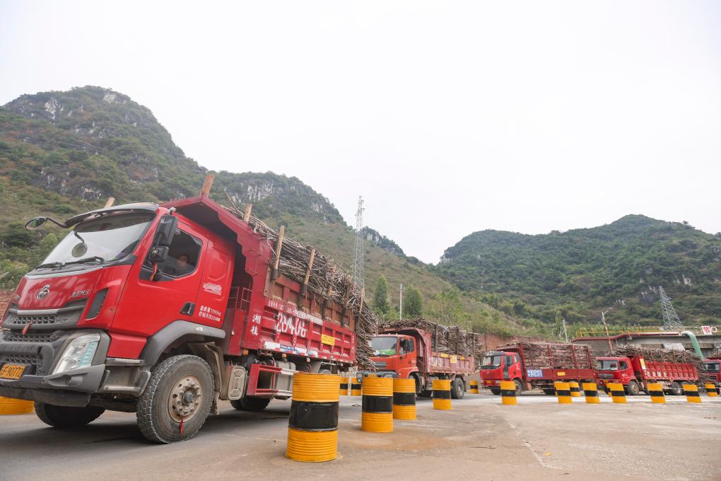近日,在廣西來(lái)賓市一糖廠,裝滿甘蔗的車輛正排隊(duì)入廠。新華社記者 胡星宇 攝