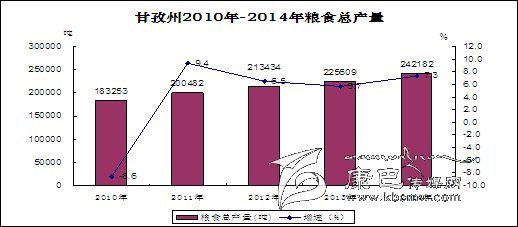 2014年,全州地區(qū)生產總值(GDP)達到206.81億元,按可比價格計算較2013年增長4.2%。其中,第一產業(yè)增加值51.48億元,增長4.6%;第二產業(yè)增加值77.20億元,增長2.4%;第三產業(yè)增加值78.13億元,增長6%。三次產業(yè)結構為24.9:37.3:37.8。