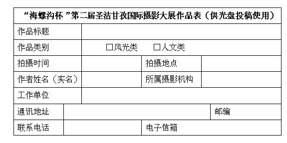 光盤包裝盒上注明大展名稱,每幅作品文件名處注明作品標(biāo)題,同時提供作者資料及作品信息(word文檔)。投稿作品為jpg格式,圖片統(tǒng)一處理為長邊600—1000像素,文件大小控制在500KB以內(nèi)。無相關(guān)資料的作品,主辦單位有權(quán)取消其參評資格。作品以光盤(CD—R或DVD—R)形式郵寄至: