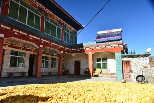 初夏的清晨,有隔夜晶瑩的露珠在花瓣上閃閃發(fā)光,迎接著朝陽。“來來來,酥油茶都倒好了,大家先到樓上喝茶,今天中午美酒佳肴管吃管飽哦!”36歲牧民來讓登真熱情的招呼著客人們?!袄?,先不織了,趕緊,去把那兩箱好酒找出來!”“對了,快打電話,把你哥也喊過來陪下客人些(客人們)!”……這“管吃管飽”的“好酒”和熱情的服務(wù)接待,正悄無聲息的向大家展示著改革開放40年來農(nóng)牧區(qū)的巨大變化。