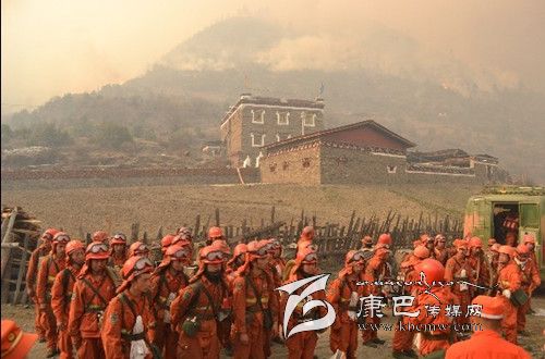 爐霍專業(yè)森林撲火隊隊長阿代介紹說:“接到命令后,我們立刻組織34名撲火隊員,緊急出動四輛森林消防車和一輛行動車趕赴火場。因火場山高路陡,撲火器材只能用人工的方式運送到一線,70公斤的器材兩個人扛,15斤一盤的水袋一個人一次背兩三盤,有的地方需要涉過刺骨冰冷的河水到達一線,許多隊員都出現(xiàn)了體力透支的現(xiàn)象,但沒有一個人叫苦喊累。”