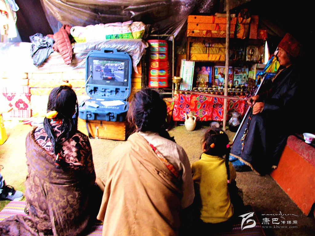 本網(wǎng)訊(尹東云文/圖)9月3日早上8點,色達縣塔子鄉(xiāng)蚌珠村牧民也窮一家人就圍坐在馬背電視機旁,等待觀看閱兵式盛況。