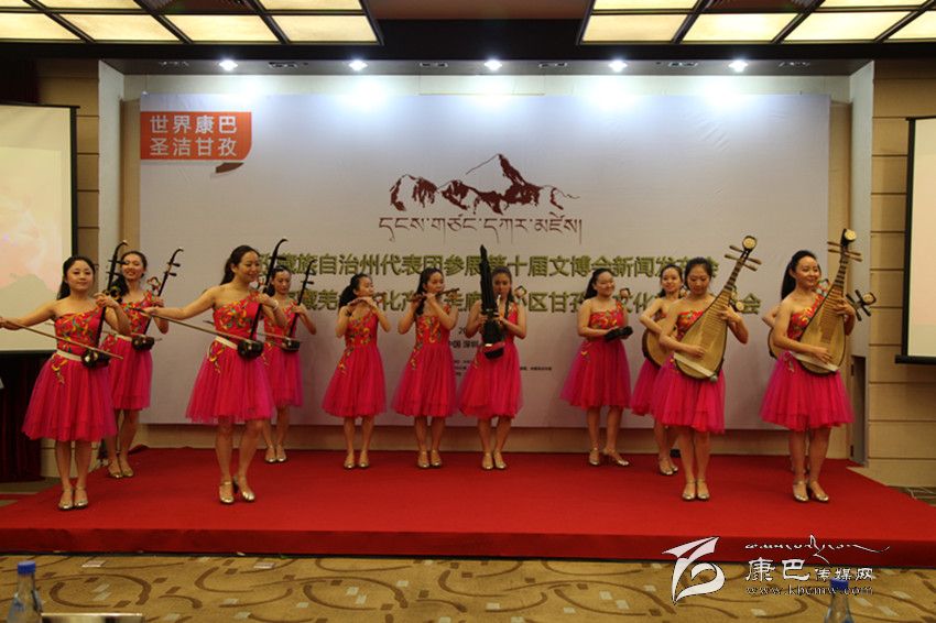 在第十屆深圳文博會(huì)我州新聞發(fā)布會(huì)上,深圳藝術(shù)團(tuán)演奏《康定情歌》。