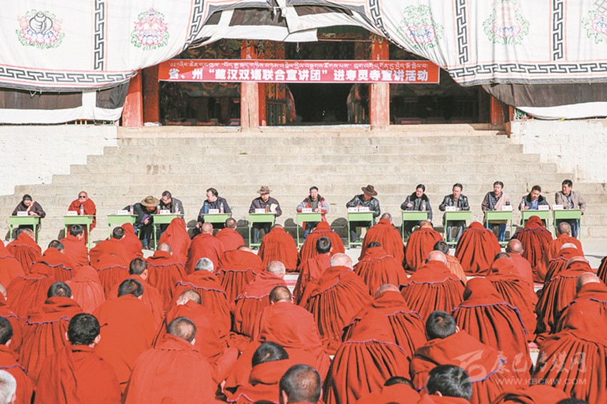 在法律進(jìn)寺廟方面,我州持續(xù)深化法律進(jìn)寺廟“四進(jìn)七有”活動(dòng),健全完善寺廟法治宣傳欄、法律圖書(shū)角、法律服務(wù)聯(lián)系點(diǎn)、法律明白人管理等工作制度,建成寺廟法治宣傳欄598個(gè)、圖書(shū)角504個(gè)、法律服務(wù)聯(lián)系點(diǎn)489個(gè),培訓(xùn)培養(yǎng)寺廟“法律明白人”947人;組織開(kāi)展《憲法》《刑法》《刑事訴訟法》《國(guó)家安全法》《治安管理處罰法》《道路交通安全法》《宗教事務(wù)條例》進(jìn)寺廟專項(xiàng)活動(dòng),全州共開(kāi)展法律入寺宣傳1900余場(chǎng)次,覆蓋寺廟532座、僧尼8萬(wàn)余人次。