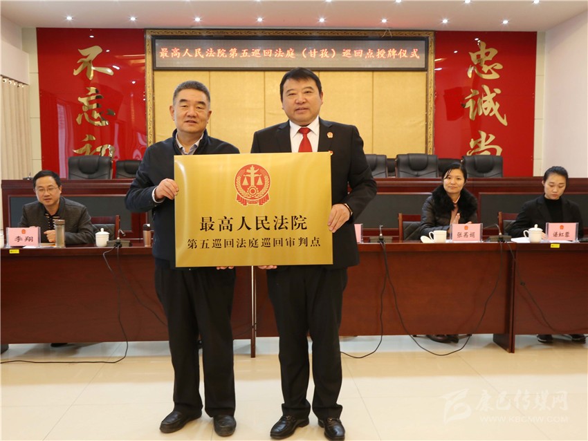 本網(wǎng)訊 11月13日,最高人民法院第五巡回法庭(甘孜)巡回審判點授牌儀式在甘孜州中級人民法院舉行,此次在四川設(shè)立兩個巡回點,州中級人民法院是授牌點之一。最高人民法院第五巡回法庭分黨組成員、副庭長汪國獻為該院授牌并在儀式上作講話,甘孜州中級人民法院黨組書記、代理院長付寶接牌并作相關(guān)工作匯報。