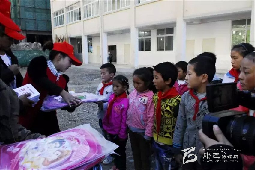 2014年9月1日德格縣青年志愿者服務(wù)隊(duì)雪梅等成員為貧困青少年送去學(xué)習(xí)包作為開(kāi)學(xué)禮物。
