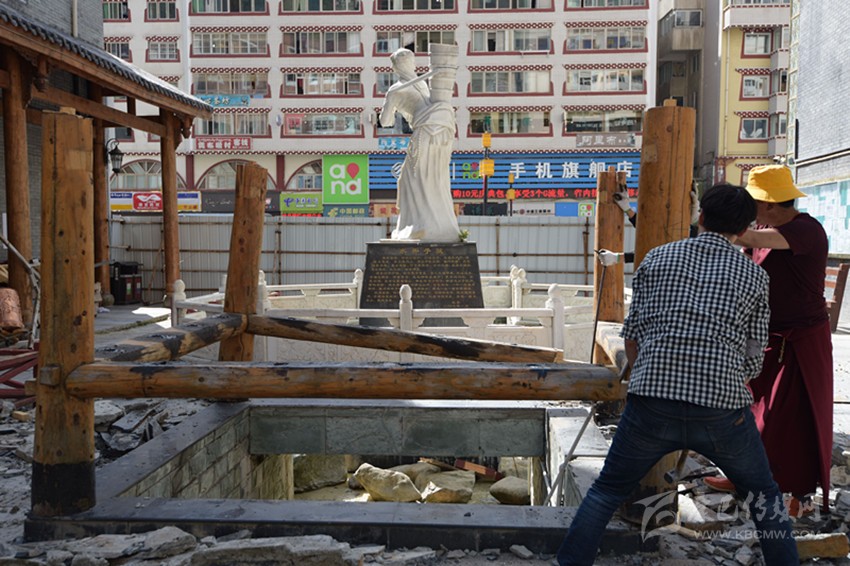 7月5日,夏日艷陽照耀下的康定城中,散步的人們簇擁在水井子藝術景觀改造提升施工現場議論紛紛。