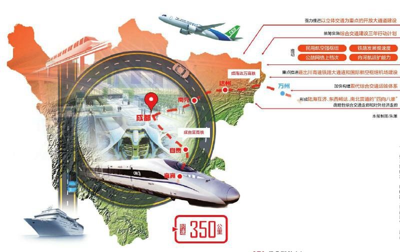 對(duì)內(nèi),有助于支撐我省“一干多支”“五區(qū)協(xié)同”發(fā)展戰(zhàn)略。西南交大黨委副書記晏啟鵬認(rèn)為,四川空、公、水運(yùn)已有一定基礎(chǔ),發(fā)展態(tài)勢清晰,再新增受惠面大、參與度廣的兩條高速鐵路建設(shè),能使成都和川南經(jīng)濟(jì)區(qū)、川東北經(jīng)濟(jì)區(qū)實(shí)現(xiàn)1小時(shí)左右交通互聯(lián),不同城市將連點(diǎn)成面。